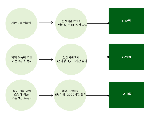 자격증 소지자가 [일정한 교육 경력을 갖춰 상위 등급 (3급 ➡ 2급, 2급 ➡ 1급) 으로 자격을 취득했을 경우]를 말합니다.